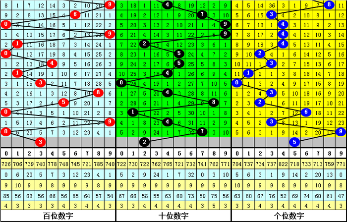 百位号码奇偶比为4:3,奇数号码表现相对较热,本期预计奇数号码再出;大小比为3:4,小 号表现活跃,本期预计开出小 号。